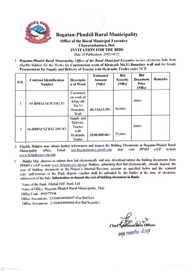 बोलपत्र खरिद सम्बन्धी सूचना
