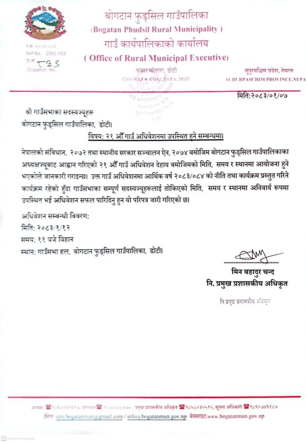 २१ औं गाउँ अधिवेशनमा उपस्थित हुने सम्बन्धमा ।