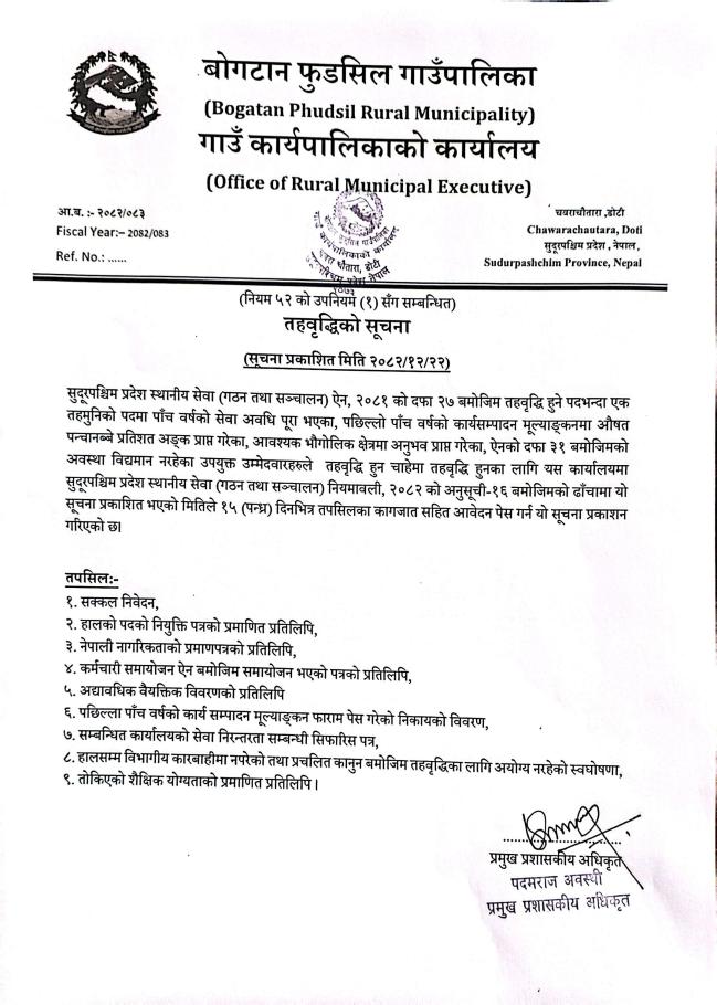 तहवृद्धिको सूचना !