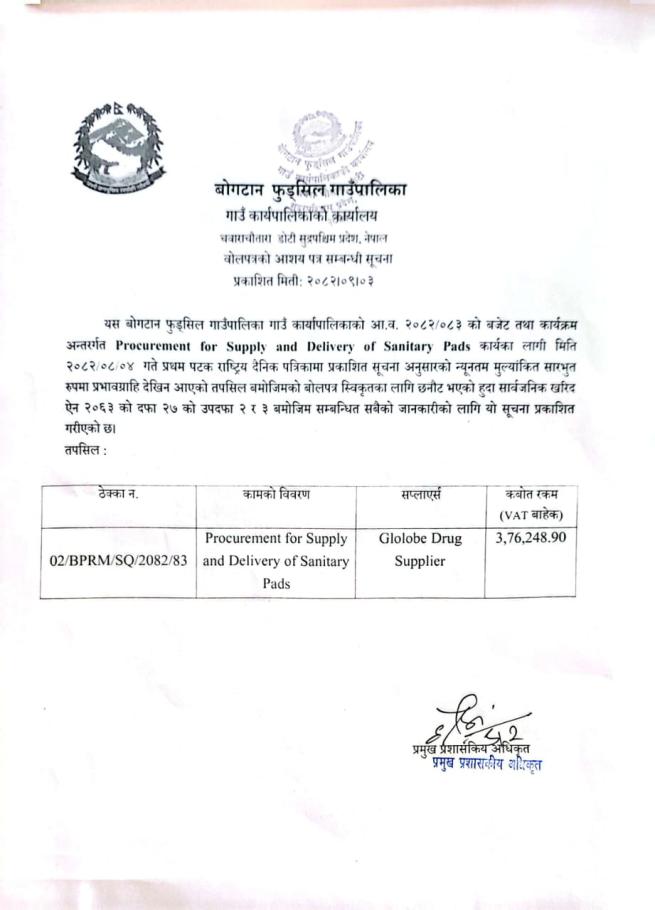 बोलपत्रको आशय सम्बन्धि सूचना !