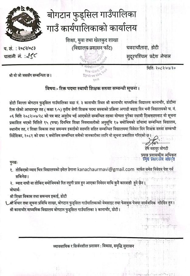 रिक्त पदमा स्थायी शिक्षक सरुवा सम्बन्धी सूचना !