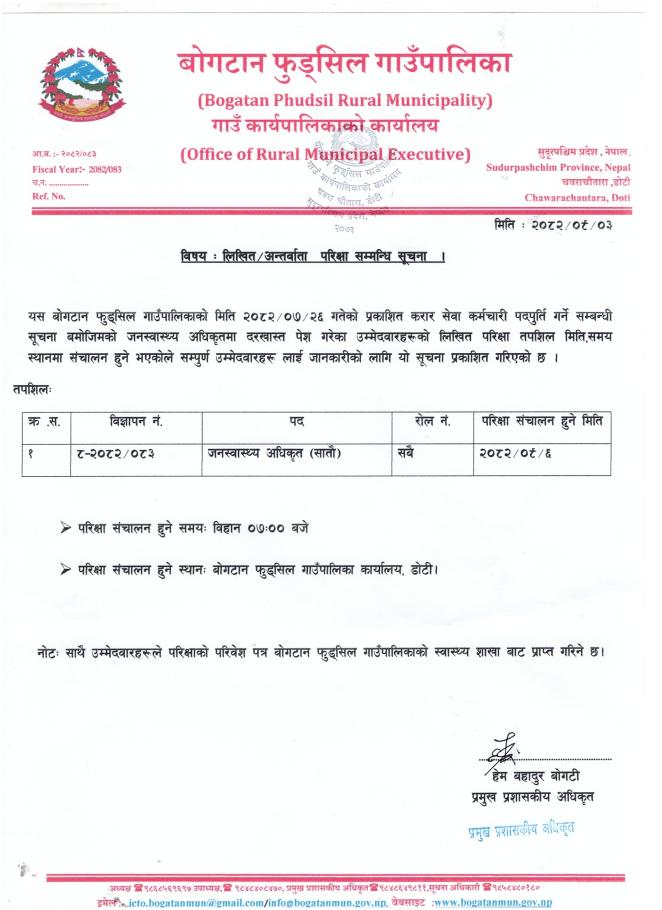 लिखित तथा अन्तर्वाता परिक्षा सम्बन्धी सूचना ।
