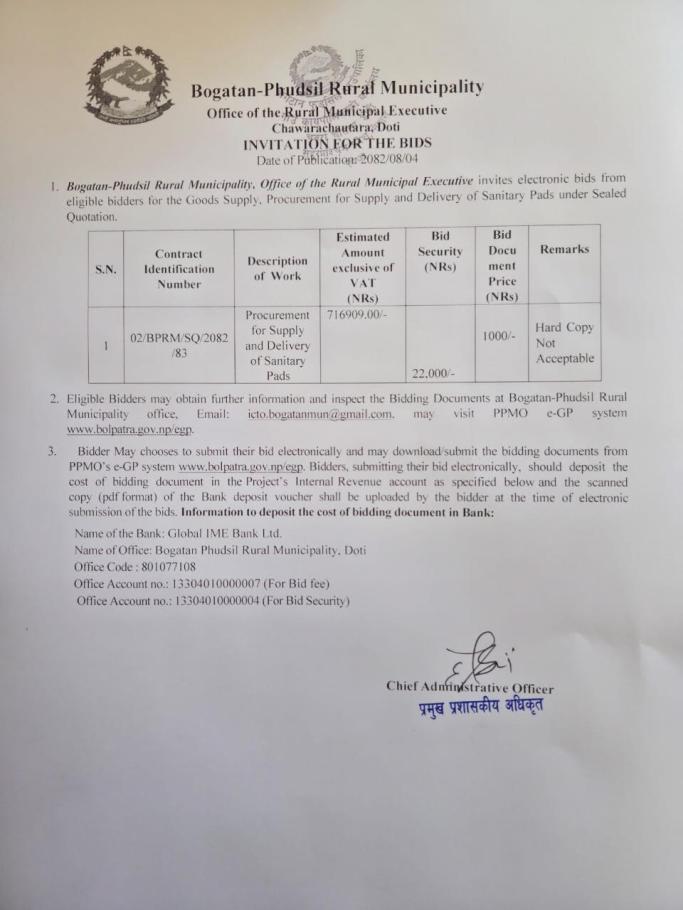 सार्वजनिक खरिद/बोलपत्र सूचना