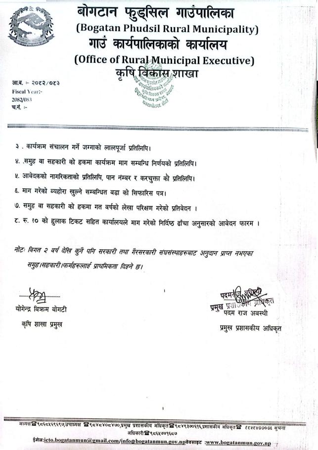 कृषि विकास कार्यक्रम संचालनका लागि आवेदन पेश गर्ने सम्बन्धि सूचना !